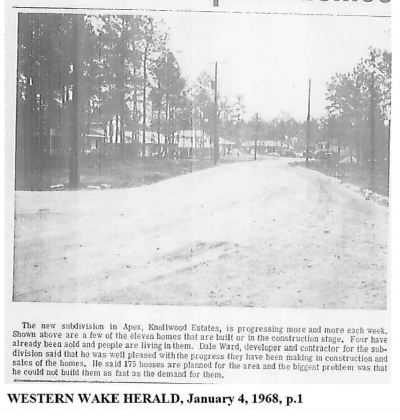Long before the massive master-planned communities of today like Bella Casa or Sweetwater, there was Knollwood. Widely considered to be the very first major suburban subdivision in Apex history, the very first houses in Knollwood hit the market and were sold in 1967.